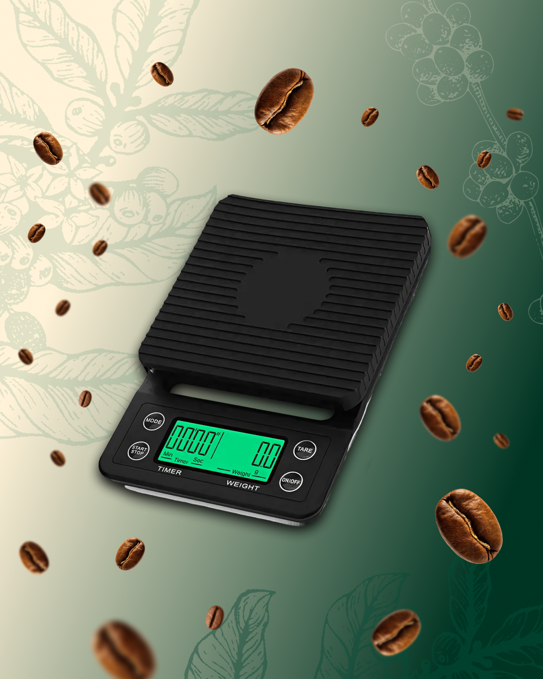 Perfeita para os entusiastas que buscam precisão no preparo do café, esta balança digital oferece total controle sobre peso e tempo. Pese até 3kg com precisão de 0,1g, alcançando a exata quantidade que quiser, a qualquer momento. A balança possui tela em LCD retroiluminado, capa protetora de silicone à prova de água e um timer inteligente, que desliga a balança automaticamente após 1 minuto de inatividade.