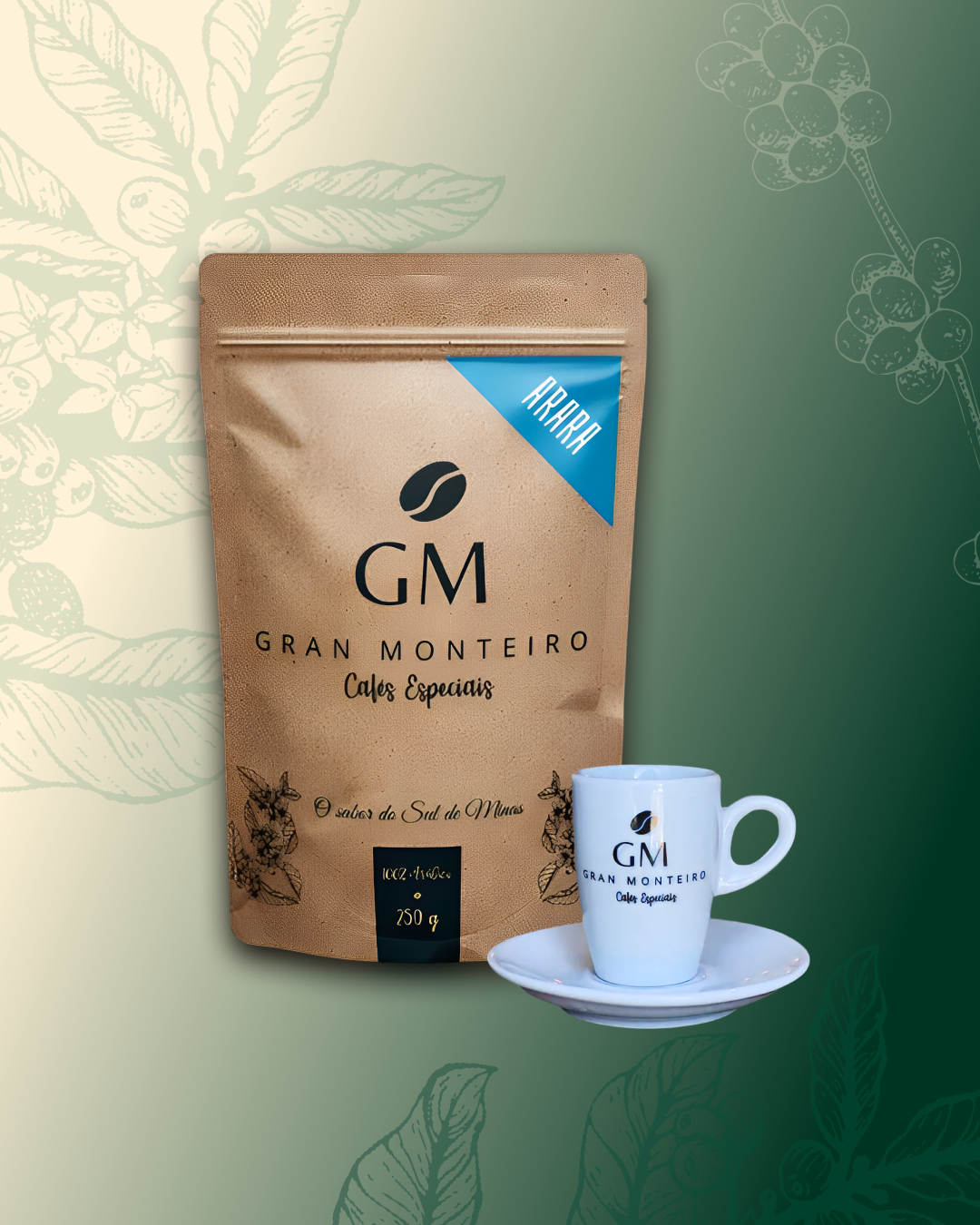 Nesse kit você leva o nosso Arara, uma das nossas origens mais vendidas, e uma xícara personalizada Gran Monteiro para você beber o seu cafézinho!